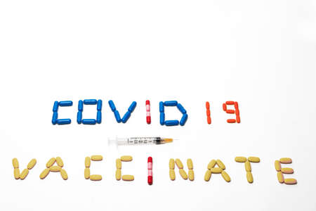 Pills spelling and emphasizing the Coronavirus Vaccination during Covid 19 with Copy Space