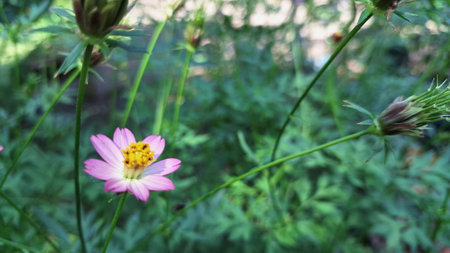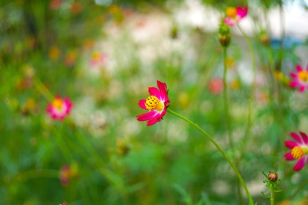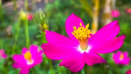fresh mix pink cosmos flower blooming in natural botany garden with copy space.
