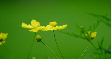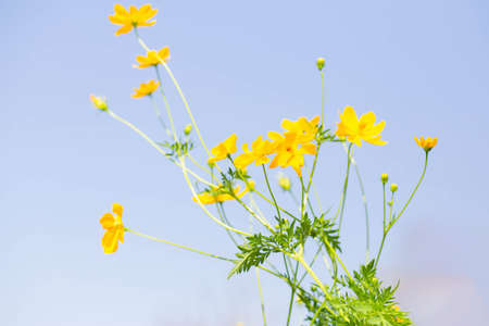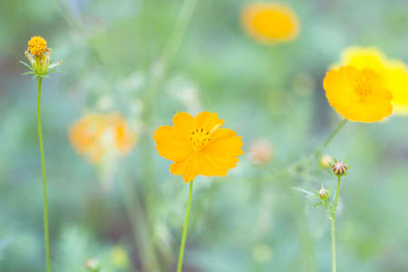 Close up shot of beautiful Yellow Flower cosmos sulphureus with blur background,Yellow cosmos flowers on a natural background, Yellow Cosmos flower