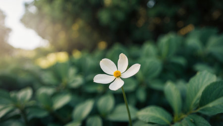 AI Generated. A Single White Flower in a Sea of Green Leaves