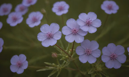 This captivating image features delicate pink flowers flourishing in lush greenery, capturing the essence of nature
