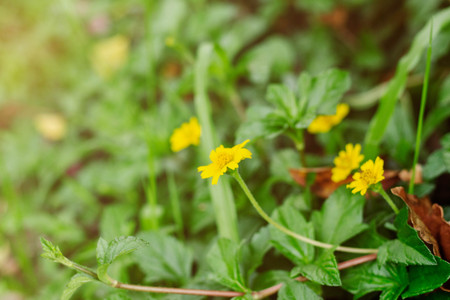 Maxican daisy flowers (Tridax procumbens (L.) L.) on natural green background.