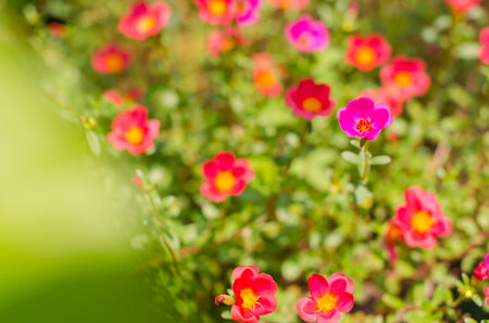 Beautiful pink Common Purslane, Verdolaga or Pigweed, Little Hogweed in graden.