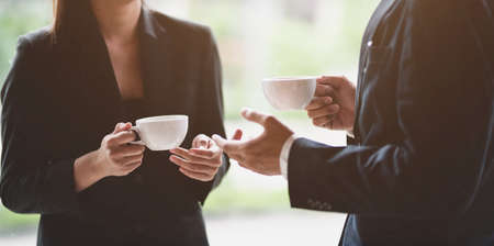 Professional business team discussing while having coffee break during the meeting