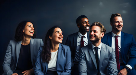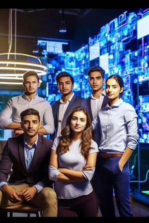 Business professionals Group of young confident business people analyzing data using computer while spending time in the office : Generative AI