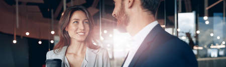 Business meeting. Professional relationship. Corporate lifestyle. Male and female partners discussing project.