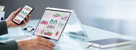 Financial Dashboard Graph On Digital Tablet Or Convertible Laptop