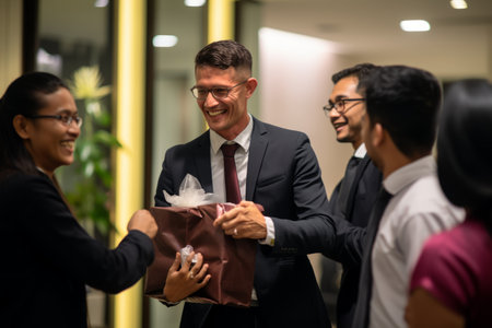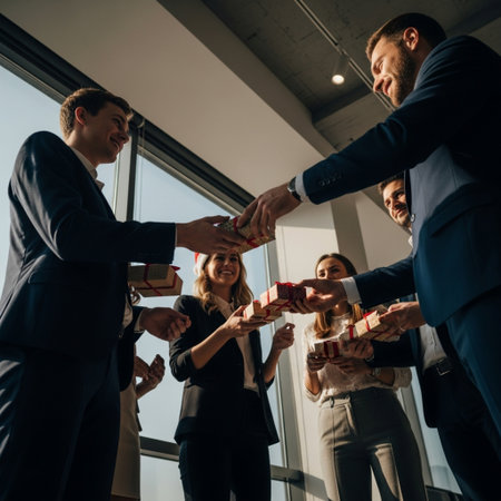 A joyful celebration of New Year with teammates sharing small tokens of gratitude