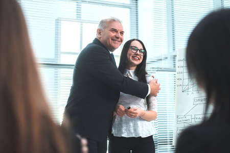 A highly qualified senior businesswoman and her staff cheered in meetings, planning meetings and training sessions to discuss internal issues. Management concepts of senior executives.