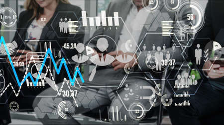 Imaginative visual of business people and financial firms staff . Concept of human resources , enterprise resource planning ERP and digital technology .
