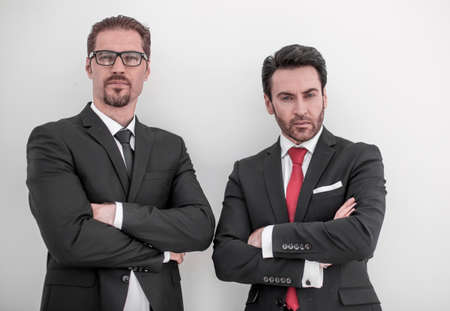 true success. leadership. ambitious colleague experts. two men in formalwear.