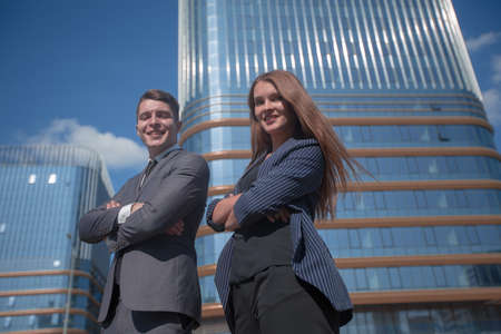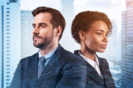 Businessman working together. Portrait of businessman and businesswoman cooperating.
