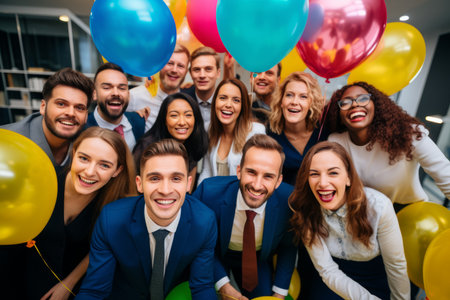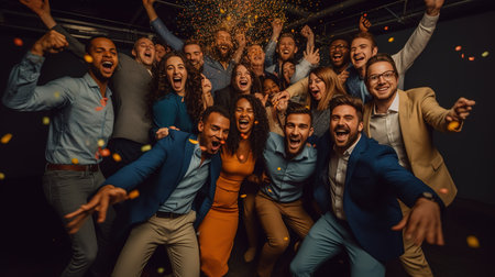 Unleashing Joy: Energetic Businesspeople Celebrate Amidst Party Confetti
