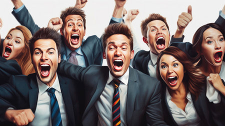 Group of happy young business people celebrating success. Business success concept.