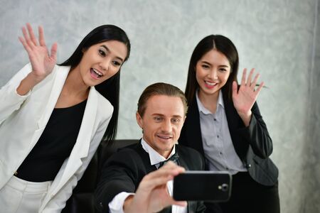 People taking selfie at business meeting. business concept