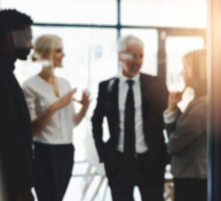 Success is greater together. Defocused shot of a group of businesspeople having a discussion in an office.
