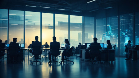 Silhouettes in a Corporate Meeting with a Cityscape Background. High quality photo