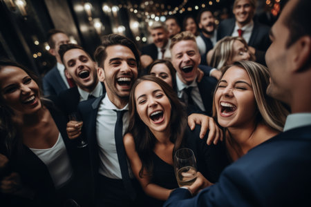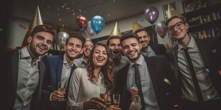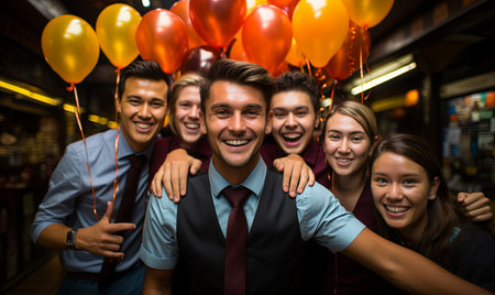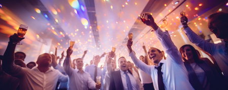 Celebration in the workplace - corporate party fun, team bonding, lively entertainment, joy of colleagues coming together to celebrate achievements and foster a positive work environment