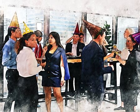Abstract colorful happiness business person enjoyment party in office watercolor illustration painting background.