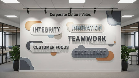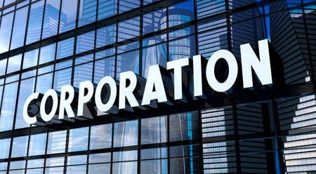 Corporation - typographical concept, sign on glass building - 3D illustration
