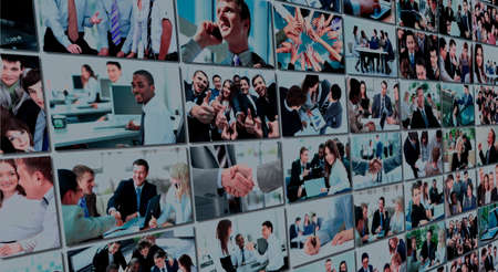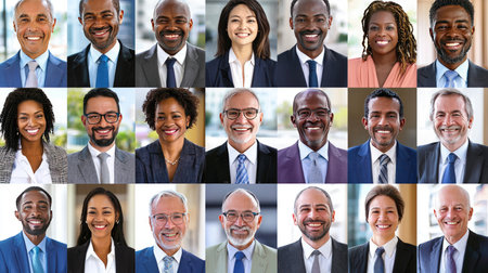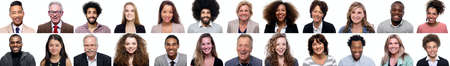Collage of portraits of an ethnically diverse and mixed age group of focused business professionals