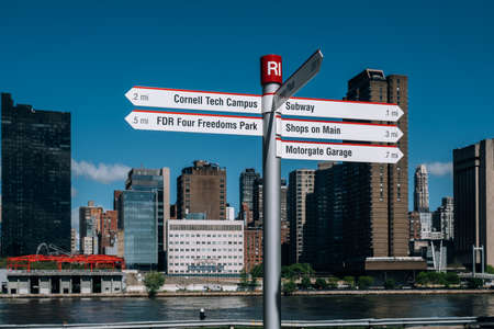 New York City - USA - May 15 2019: Road sign of Roosevelt Island