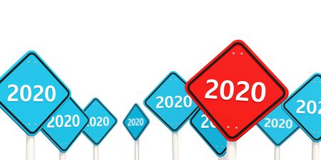 2020 New year symbol on a road sign. 3D illustration