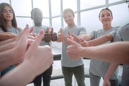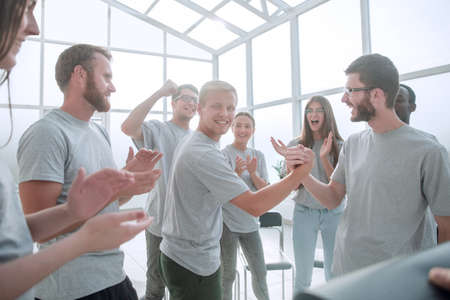 Team of young entrepreneurs and startup have business meeting and encouraging each other for good energy