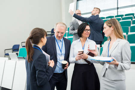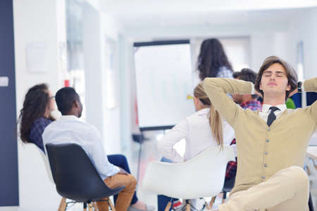 Participants are having a good time during a business lecture in a relaxed atmosphere in the conference room. Business, people, company
