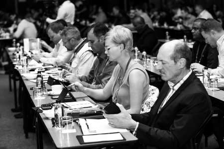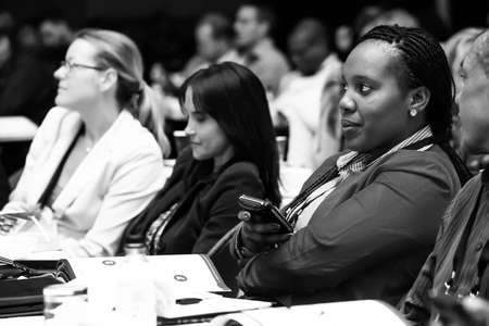 Johannesburg, South Africa - August 20, 2015: Delegates attending a sales convention in large conference hall