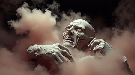 Sculpture of a man in smoke. 3d rendering