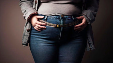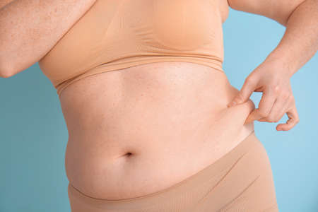 Close up of overweight woman, obesity belly.