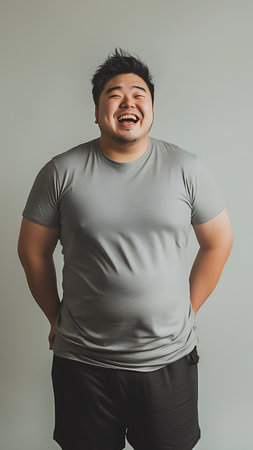 A portrait of a asian fat man show out his body and big belly. Concept of Obesity
