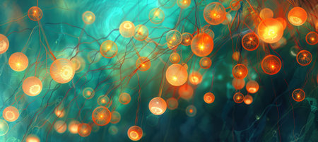 An intricate digital representation of bacteria displaying vibrant colors and glowing elements, highlighting the fascinating world of microscopic life in a stunning abstract setting.