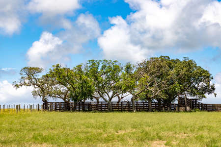 Wood Cattle crush in farm field, Tapes, Rio Grande do Sul, Brazil