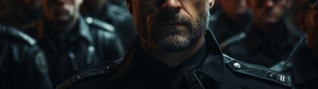 Group of serious police officers standing in uniform showing solidarity.