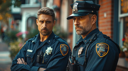 Police Officers on Duty in Urban Setting. Generative ai. High quality illustration
