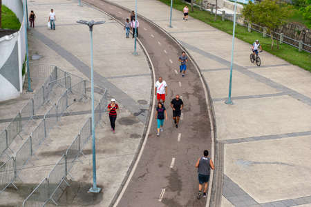 Rio de Janeiro, Brazil - october 23, 2019: People walking and walking on bike lane. Photo taken from a high vantage point