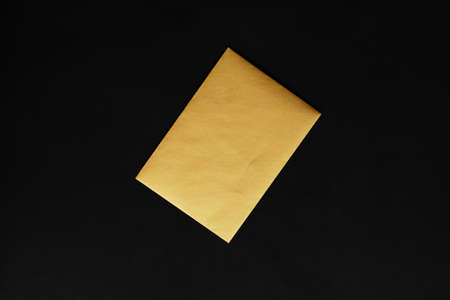 Blank golden paper card on black background, premium business and luxury brand identity mockup