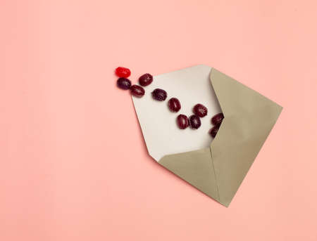 Letter with sweets. Creative concept made of candy and envelopes.