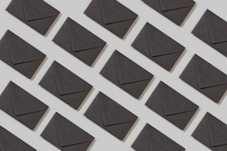 Black envelopes on a gray background in a top view