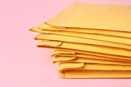 Paper envelopes on color background, closeup