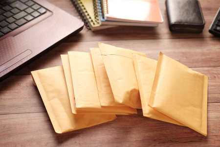 stack of envelopes on wooden background