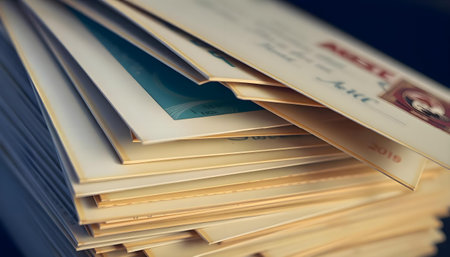Editorial extreme macro photograph of a clean stack of new, sealed envelopes ready for mailing, feat