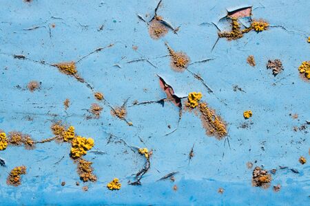 Moss grows on old rusty painted iron