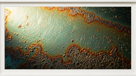 Macro view of rusted metal, showcasing its textured patina and rich colors for an industrial vibe.