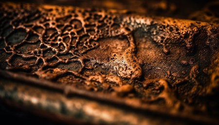 This close-up photo showcases the unique textures and weathered appearance of a vintage, rusted metal surface, A macro study of a rusted metal surface, AI Generated