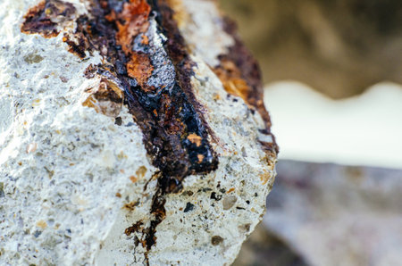 Close-up view of a weathered and rusty pipe fitting, revealing the intricate textures and colors formed over time in a derelict industrial setting, whispering stories of past operations.