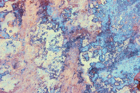 Luxurious abstract background of rich multicolored harmonious shades. Corroded metal background. Oxidized metal, enamel, rusty metal texture, surface with rust streaks and scratches. Soft focus