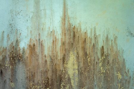 Corroded white metal background. Rusted white painted metal wall. Rusty metal background with streaks of rust. Rust stains. The metal surface rusted spots. Rysty corrosion.